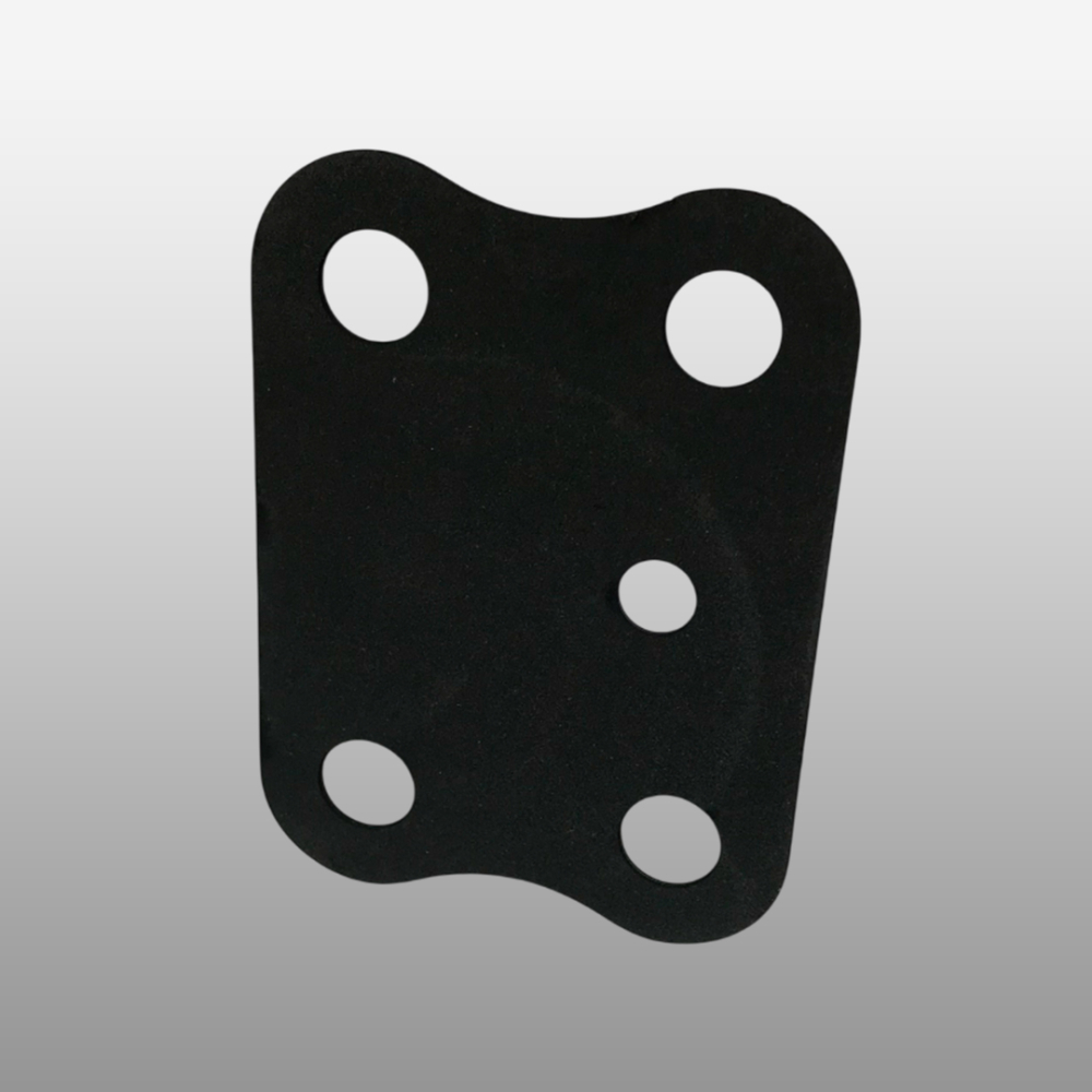 Прокладка верхней крышки шкворня бренда Shaft-Gear - артикул 3001048-A1Q/A. Размеры: длина - 95 мм, ширина - 70 мм, длина по центрам - 64 мм /40 мм, диаметр отверстия - 12,5 мм, толщина - 1 мм.